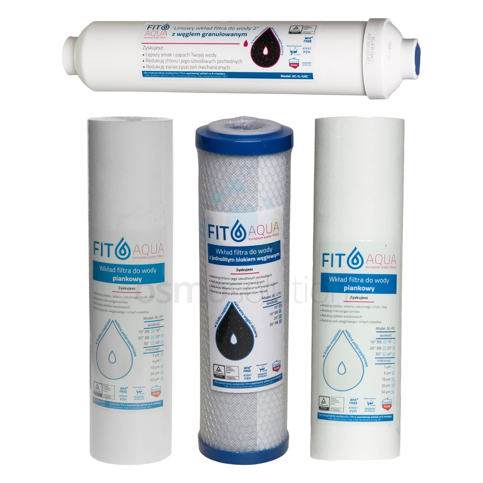 Komplet wkładów marki FitAqua, przeznaczony na pełną wymianę w filtrach bez mineralizatora tj. nasze systemy Elix RO5.