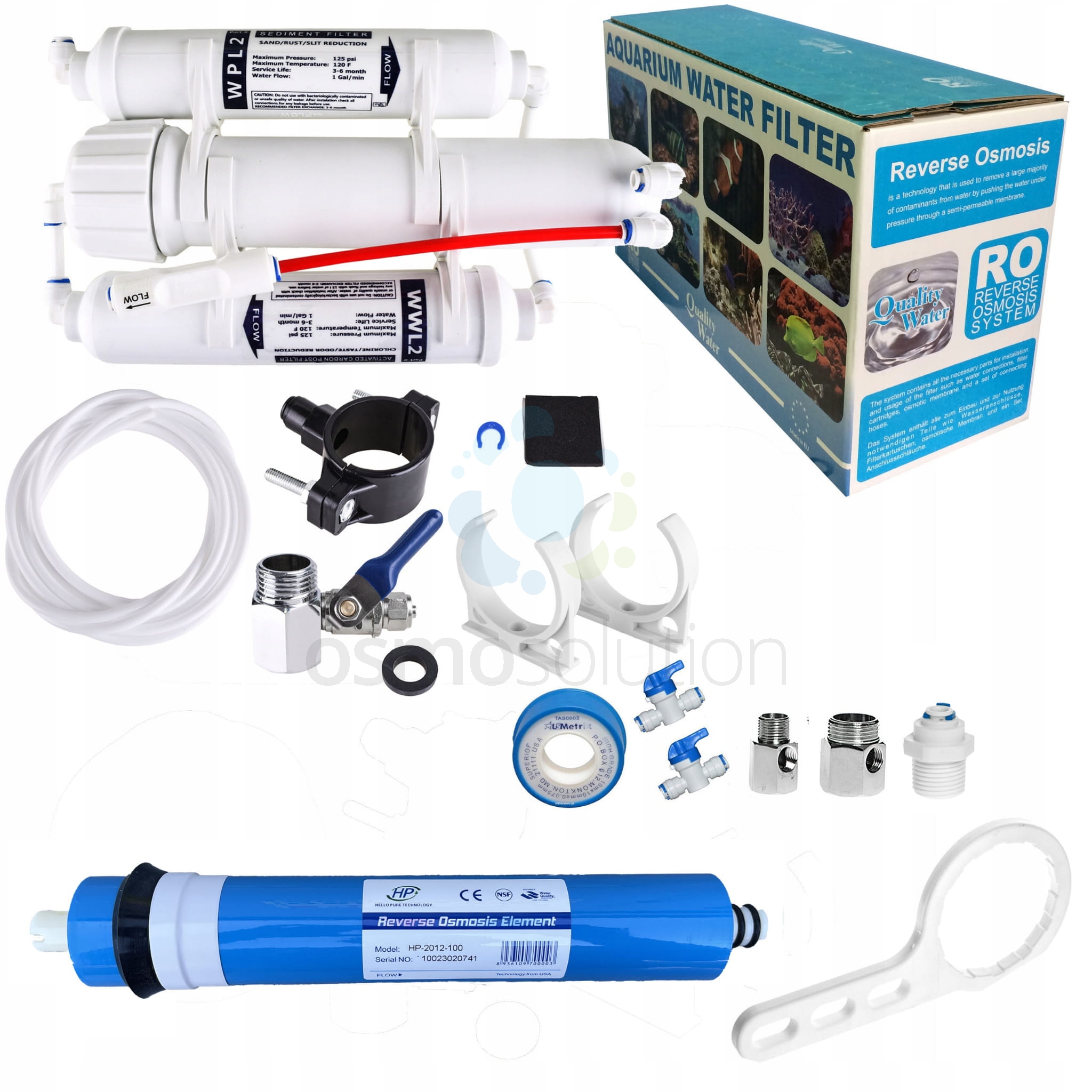Kompletny gotowy do montażu filtr akwarystyczny RO3 z membraną 100 GPD HELLO PURE + wszystkie możliwe przyłącza!!