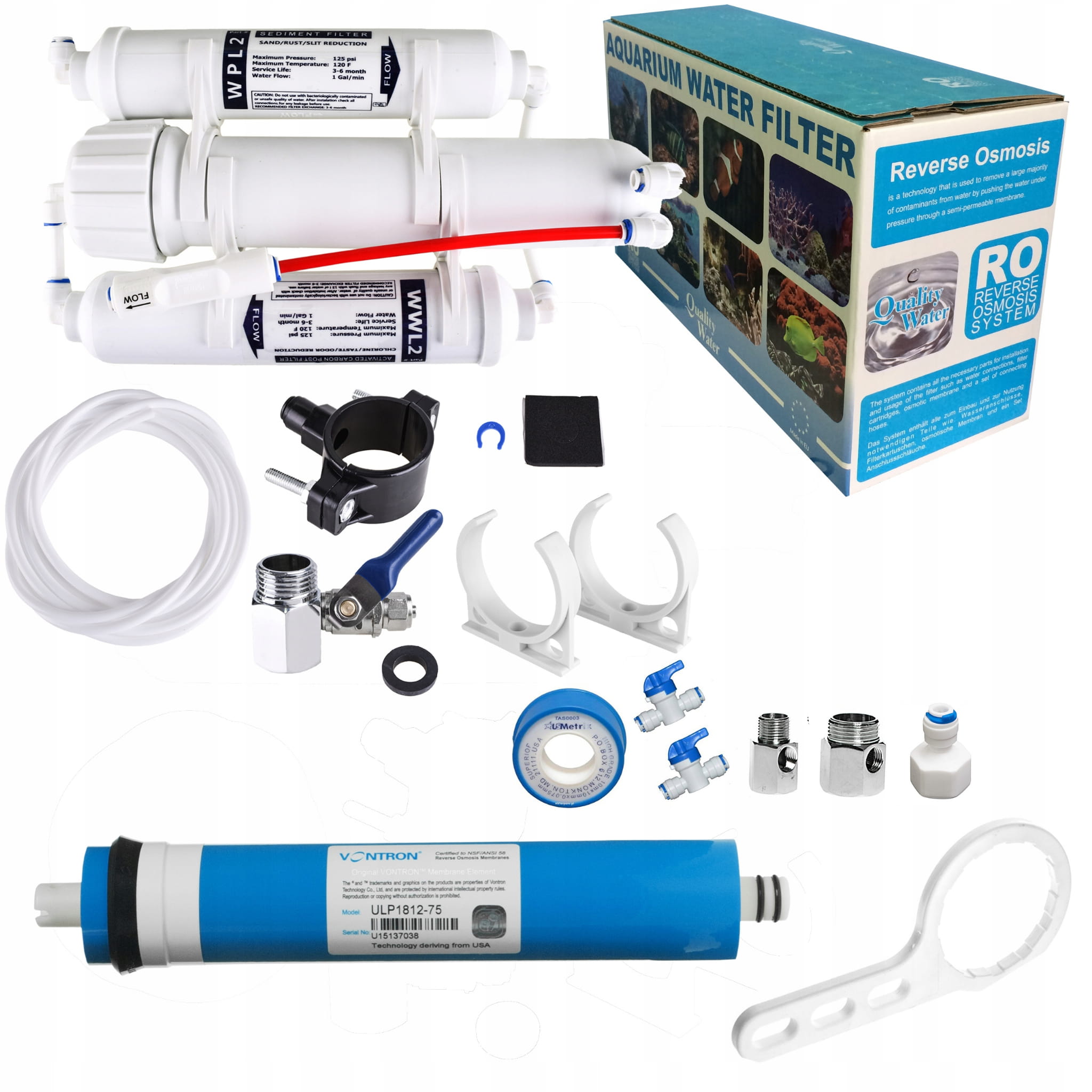 Kompletny gotowy do montażu filtr akwarystyczny RO3 z membraną 75 GPD HELLO PURE + wszystkie możliwe przyłącza!!