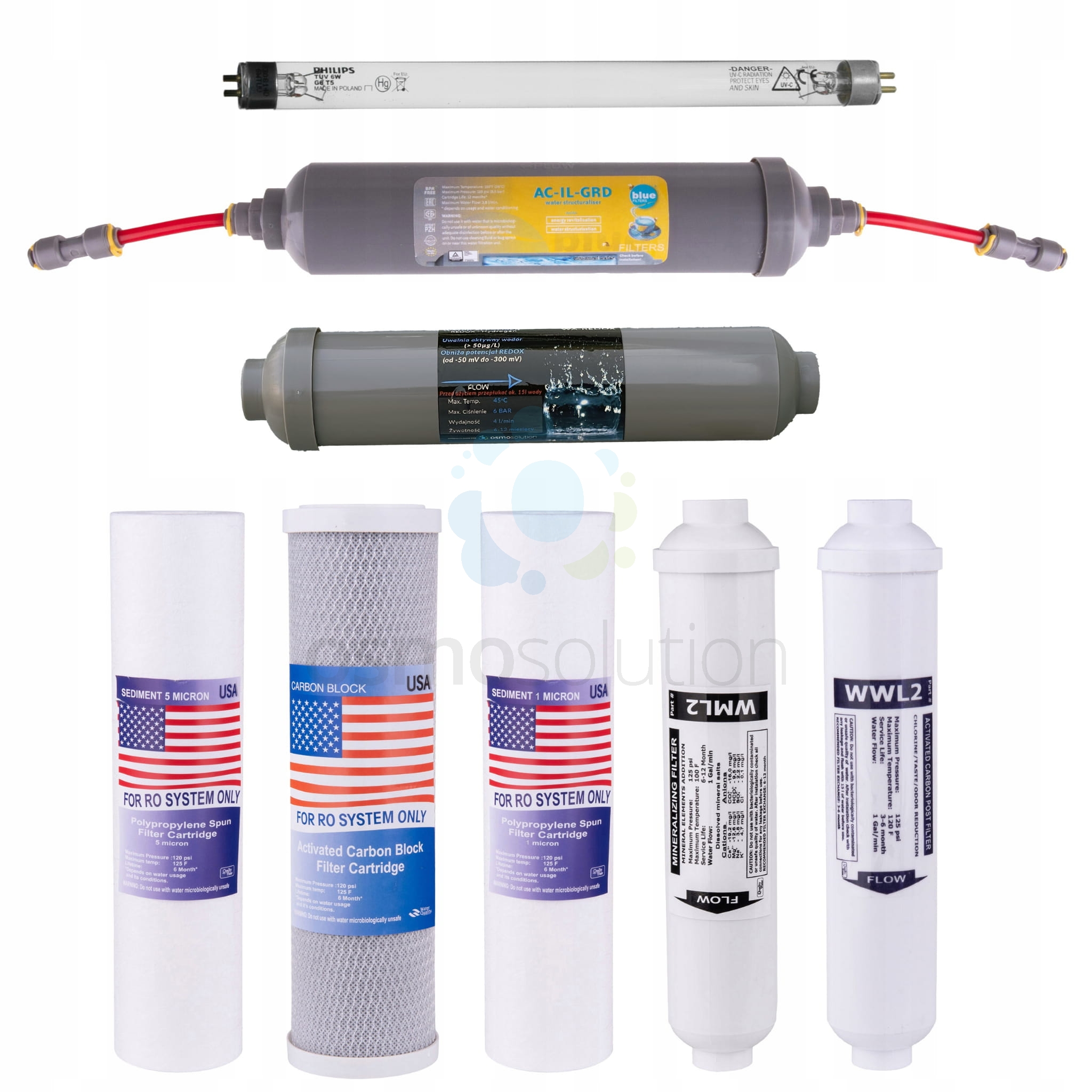 Komplet wkładów do filtrów ELIX RO10 z jonizatorem WA-REDOX i strukturyzatorem AC-IL-GRD-S oraz żarnikiem UV.