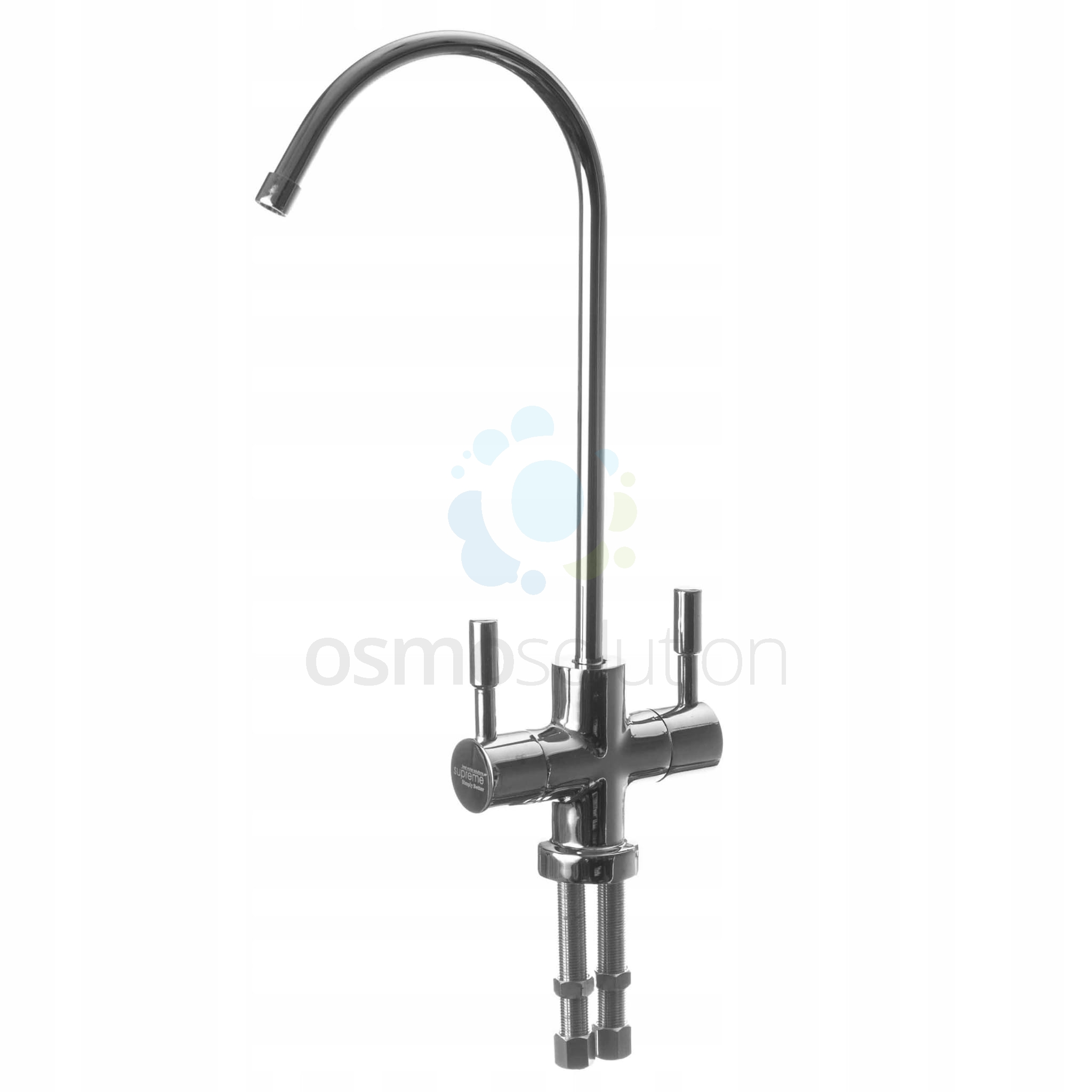 - 1x FX02 Podwójna, nowoczesna, chromowana wylewka z zaworem ceramicznym marki SUPREME FILTERS.