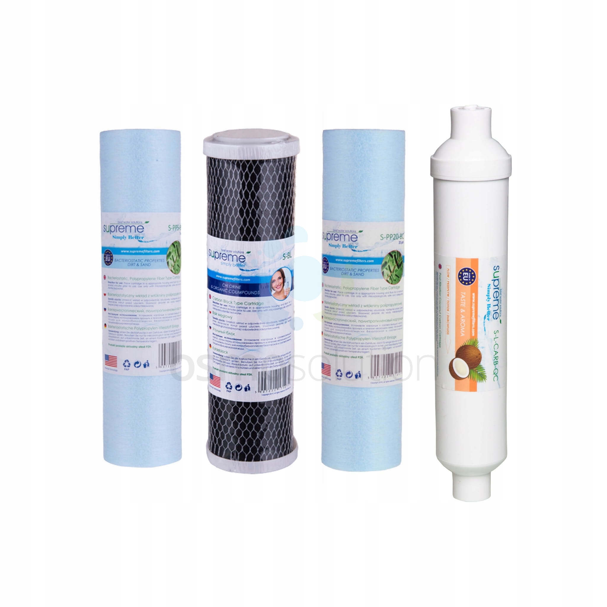 - S-L-CARB-QC to liniowy wkład wypełniony mieszanką węgla antracytowego i węgla z łupin orzechów kokosowych. Wkład stosowany jest po procesie filtracji osmotycznej. Nadaje wodzie doskonały smak i zapach wody.