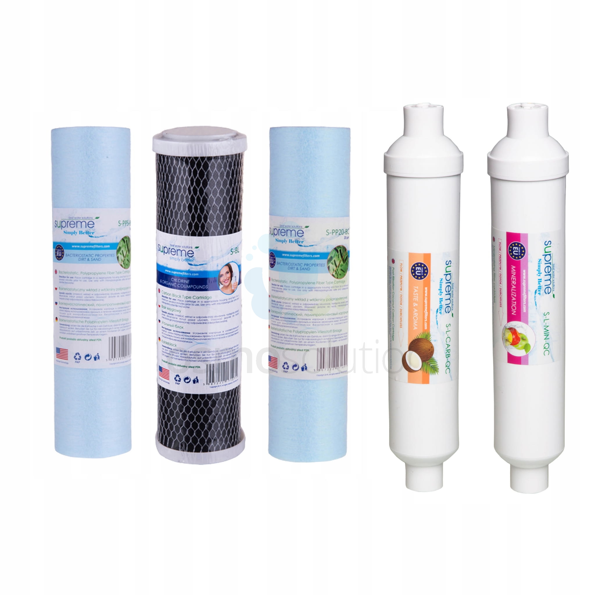 - 1x S-L-MIN-QC to liniowy wkład mineralizujący na szybkozłączkach. Wzbogaca wodę w pierwiastki niezbędne dla organizmu człowieka, takie jak: wapń, magnez, występujące w stężeniach porównywalnych do ich stężeń w butelkowanych wodach mineralnych obecnych na rynku.