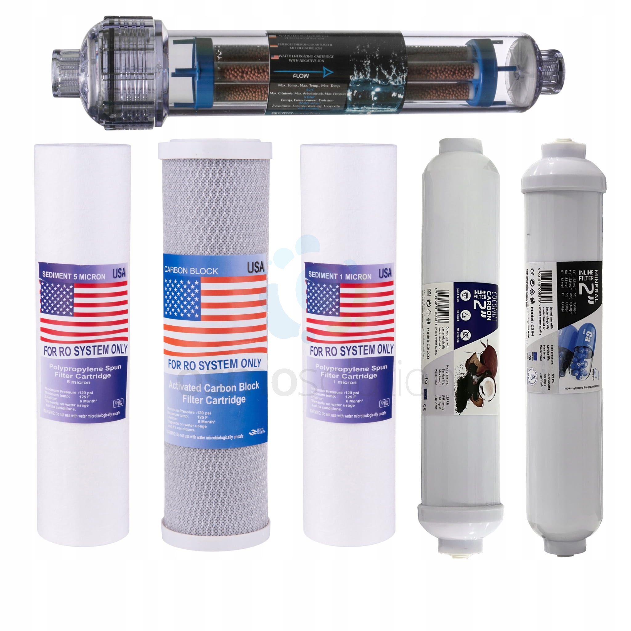 - 1x WE-2000 to najnowszej generacji wkład bioceramiczny do systemów RO. We wkładzie zastosowano specjalistyczne glinki spiekane w wysokiej temperaturze silnie emitujące promienie FIR. Zastosowanie wkładu bioceramicznego powoduje znaczną redukcję anionów, usuwając toksyny i wolne rodniki, korzystnie wpływa na zapach i smak wody.