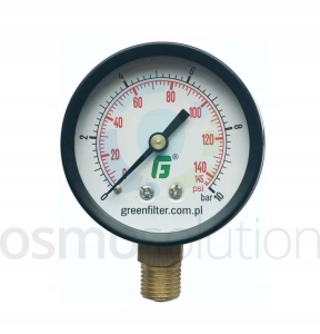 Markowy manometr, dedykowany do systemów uzdatniania wody.