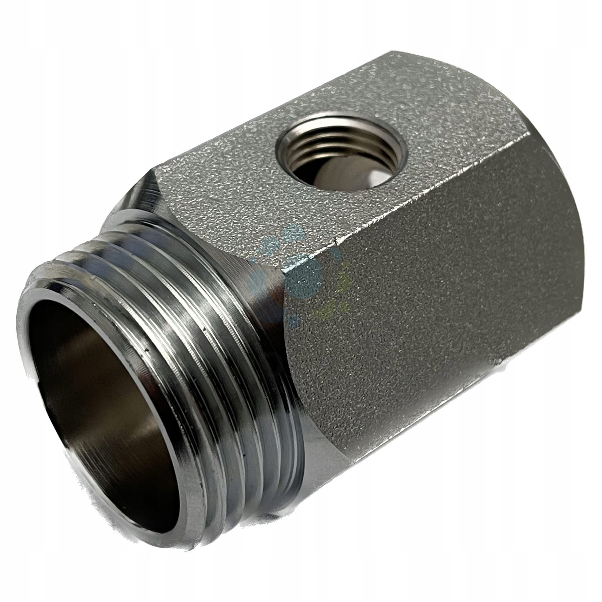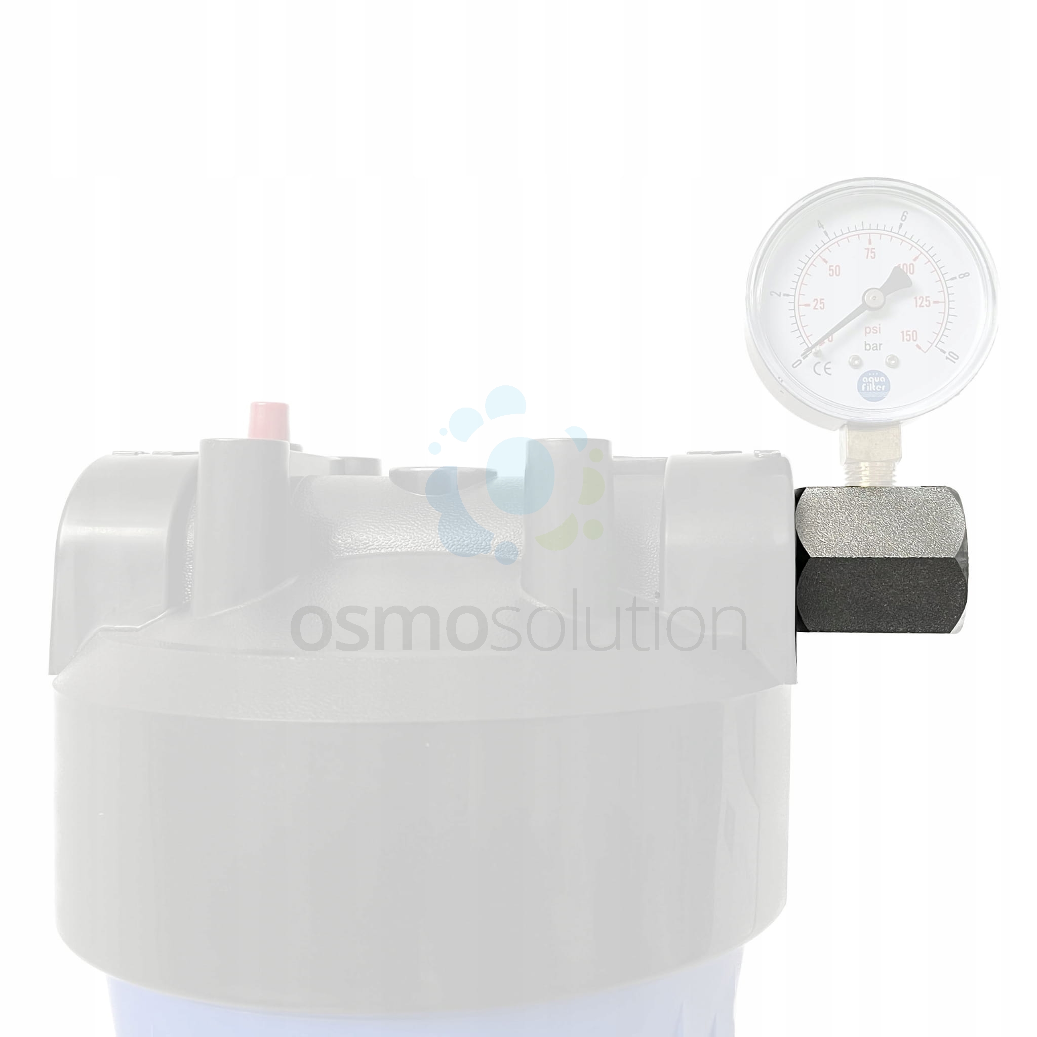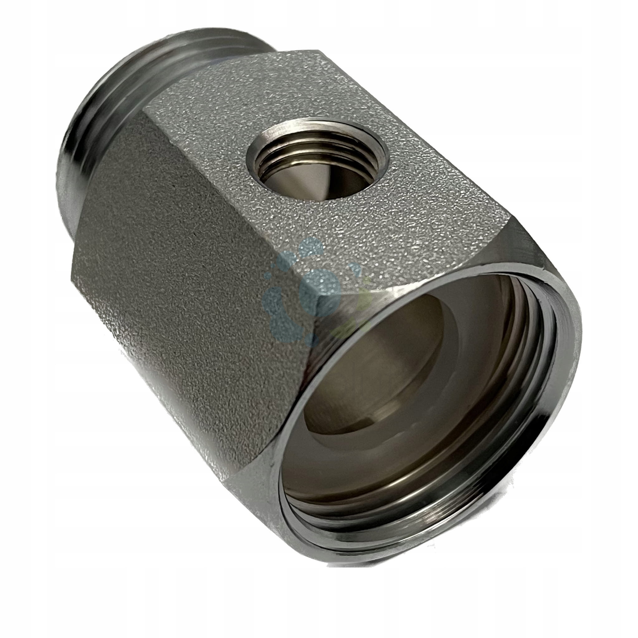 Przyłącze metalowe 1" z dodatkowym gwintem 1/4" do wkręcenia manometru i podłączenia do systemu RO.