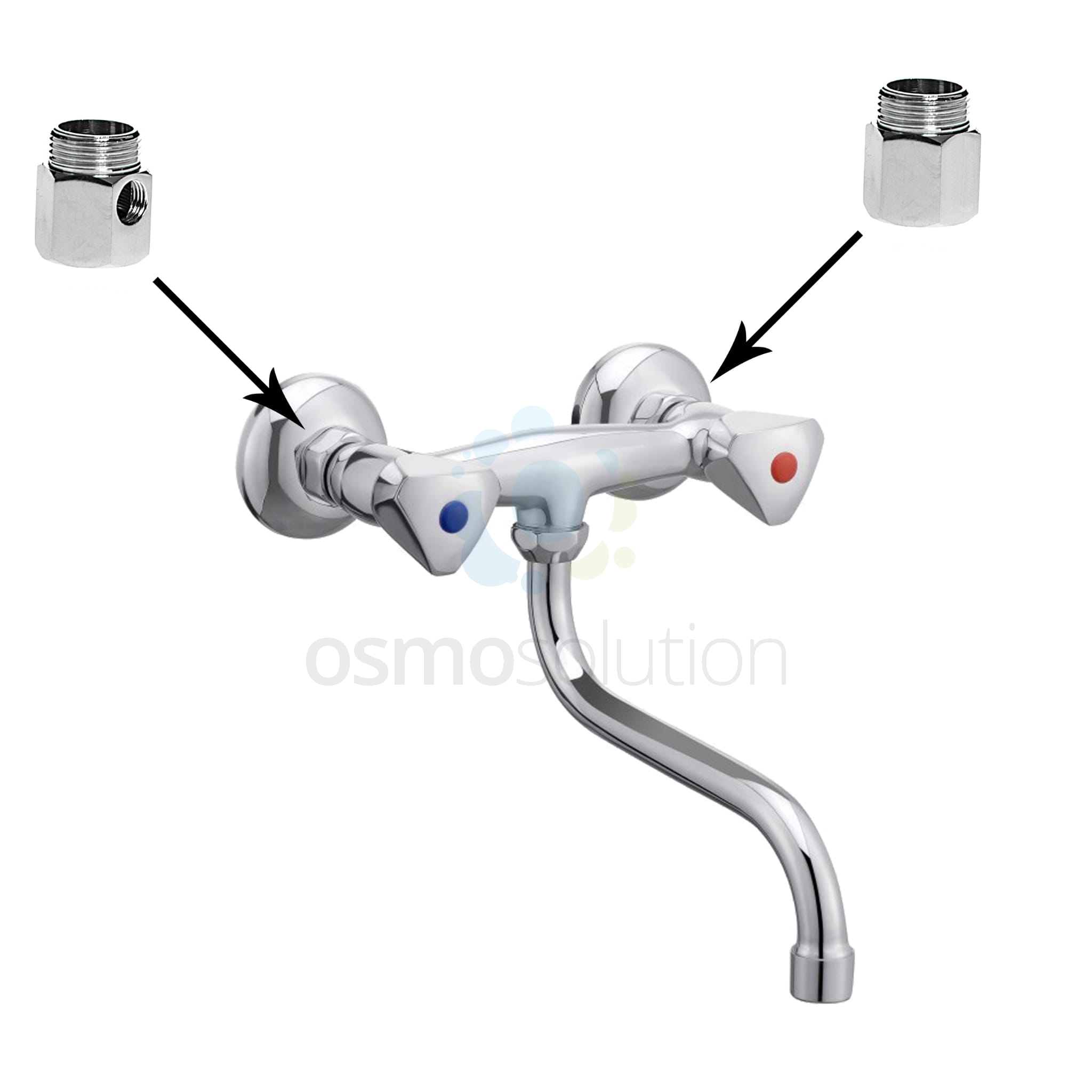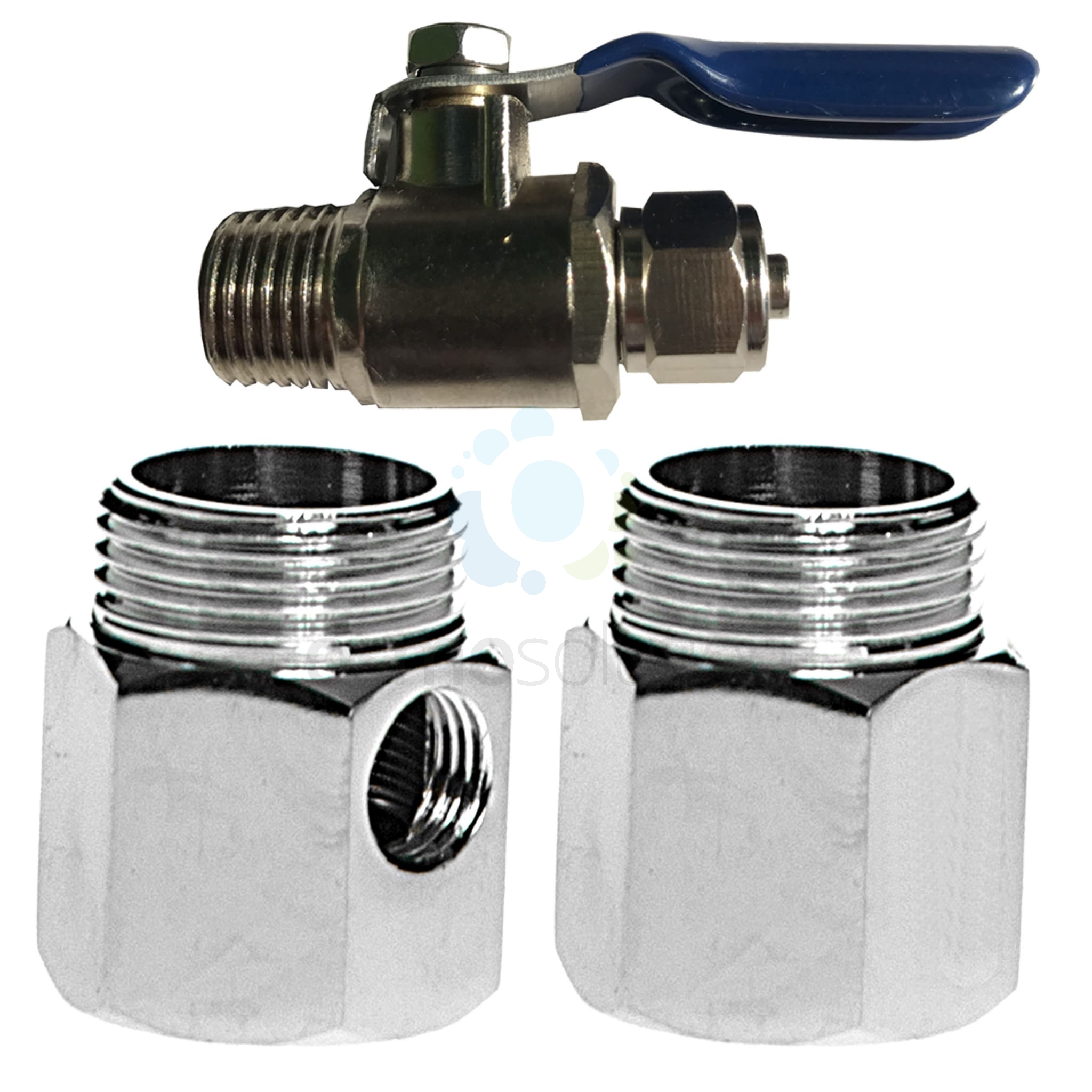 Komplet przyłączy zasilających filtry wody, lodówki, kostkarki itp. do baterii wychodzącej ze ściany.