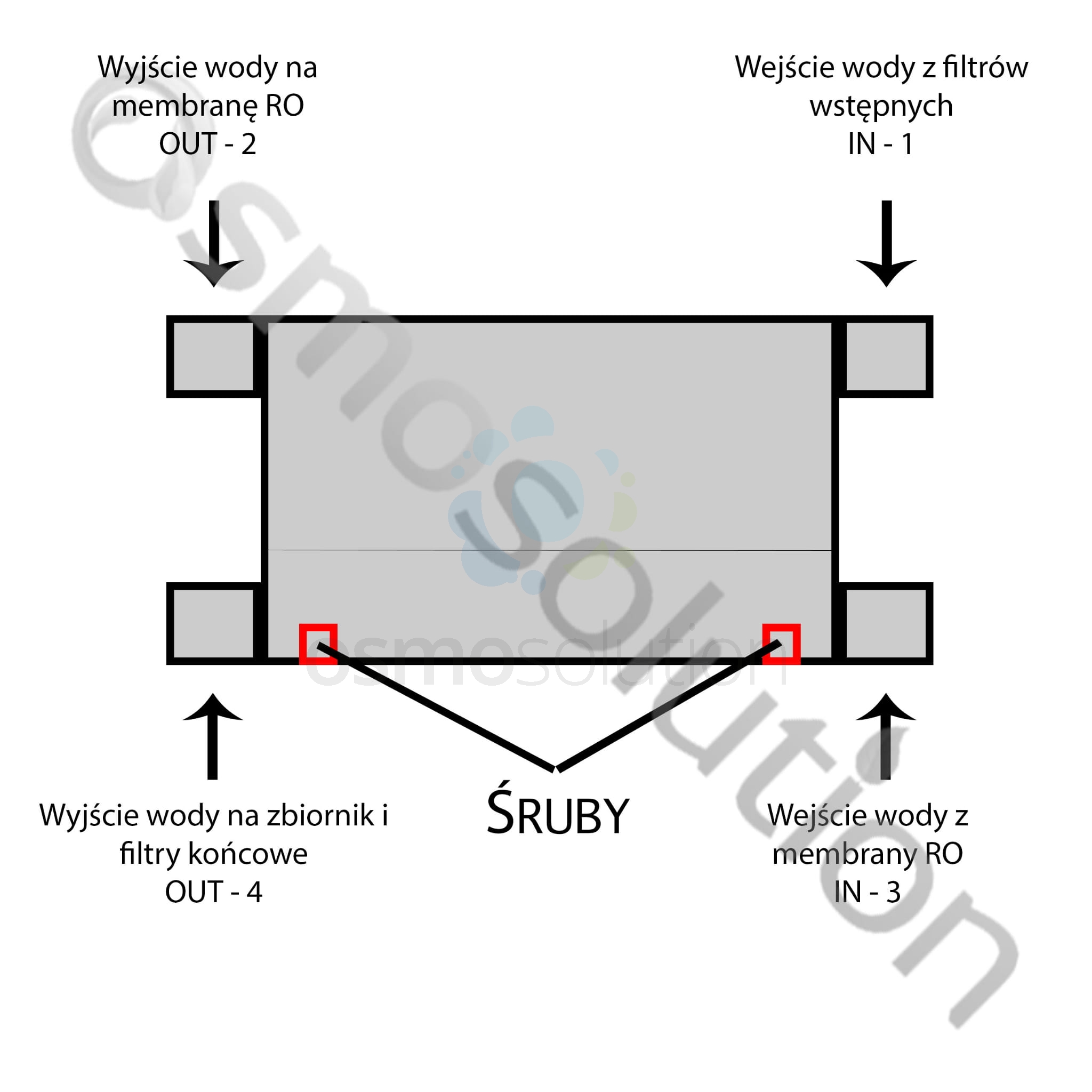 * W galerii zdjęć znajduje się schemat przedstawiający prawidłowe podłączenie do systemu RO. Jeżeli zawór podłączony zostanie "do góry nogami" nie będzie prawidłowo zamykał i otwierał.