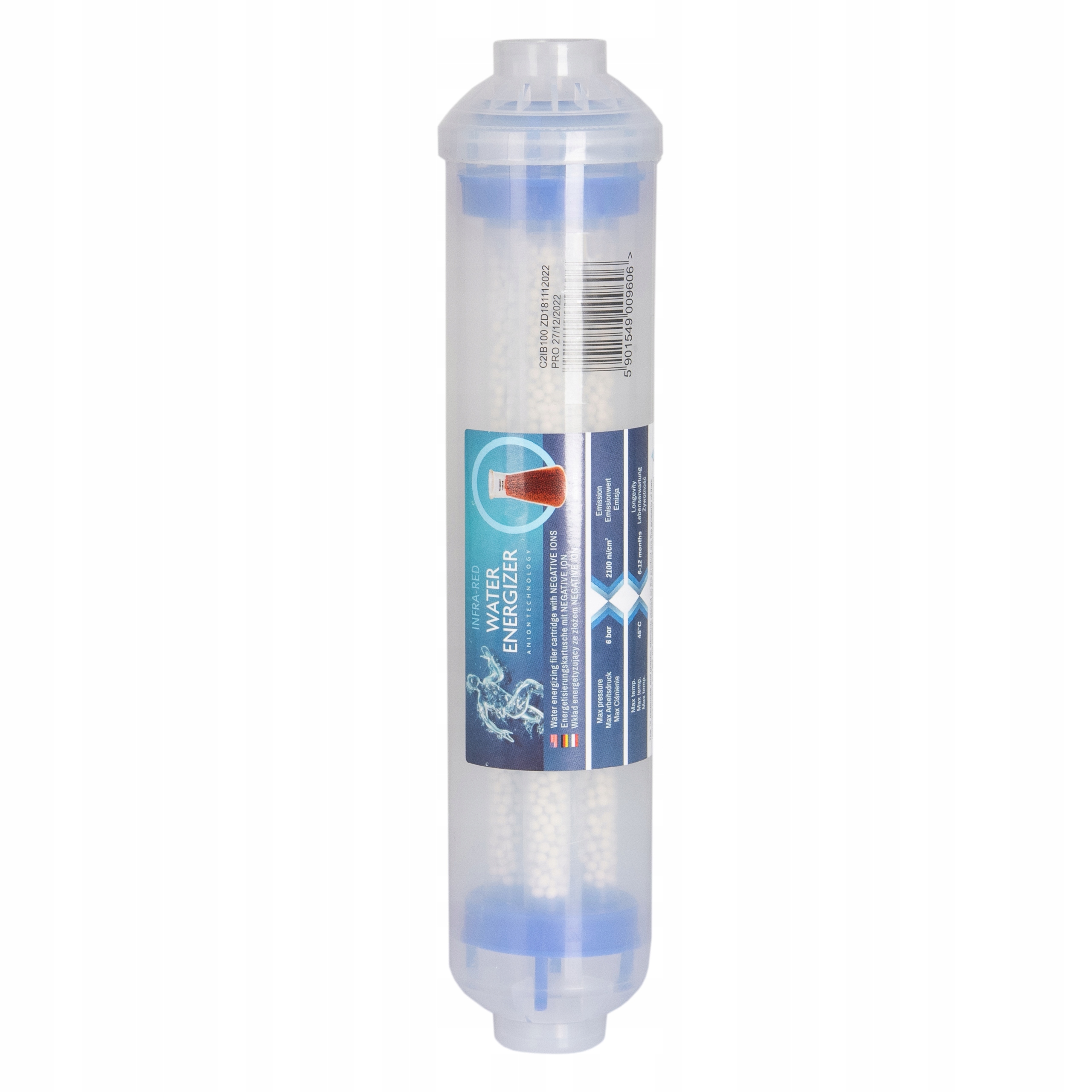 Wkład posiada aż 4 szklane trzpienie zawierające energetyzujące wodę glinki spiekane. Emisja na poziomie 2100 ni/cm3 to ścisła czołówka na rynku wkładów bioceramicznych. Warto dodać, iż obudowa wkładu wykonana jest z bezpiecznego NIE PĘKAJĄCEGO tworzywa odpornego aż do 6 barów!
