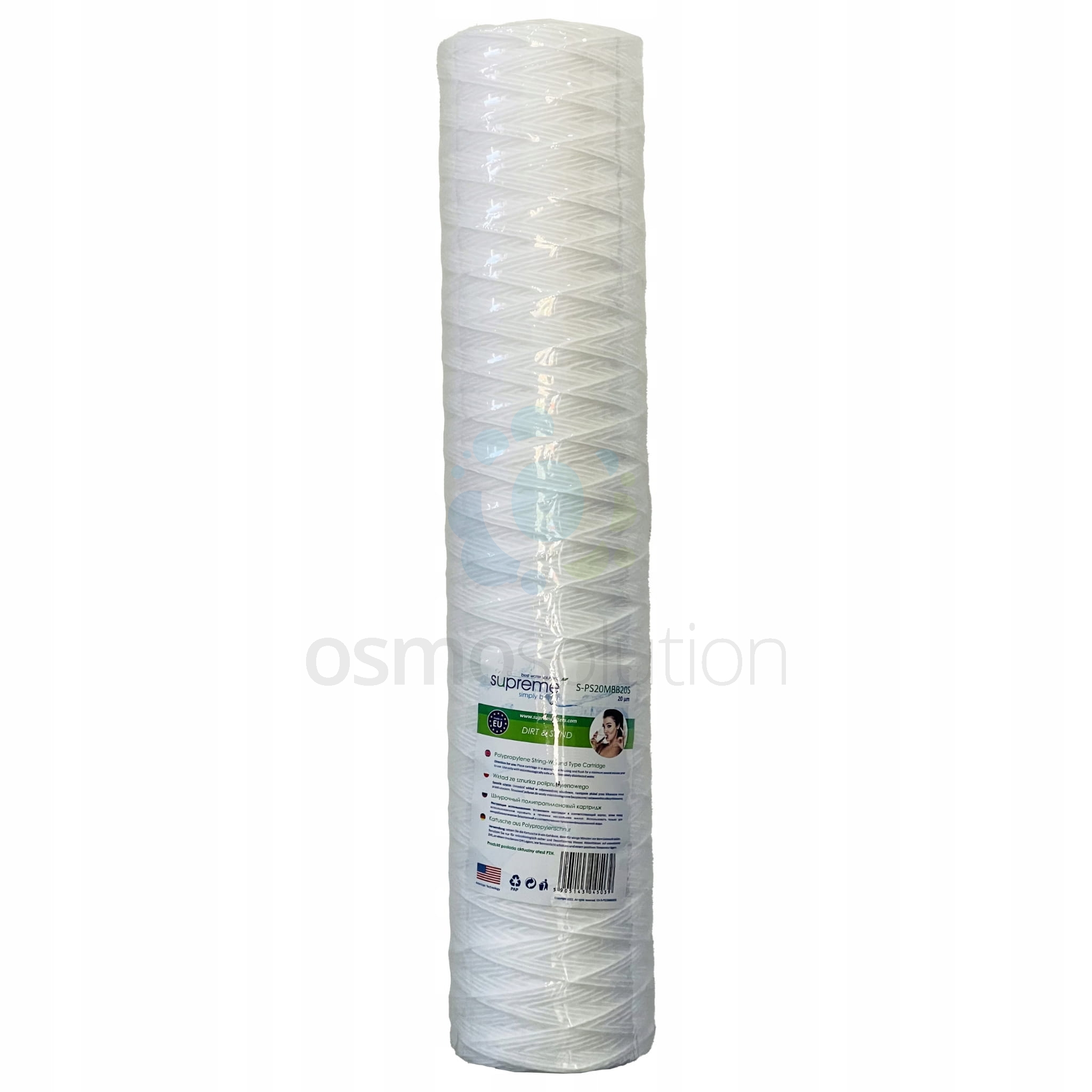 Wkład sznurkowy 20" 20 mikron typu BIG BLUE marki Supreme Filters. Wkłady mechaniczne sznurkowe wykonane ze sznurka polipropylenowego.