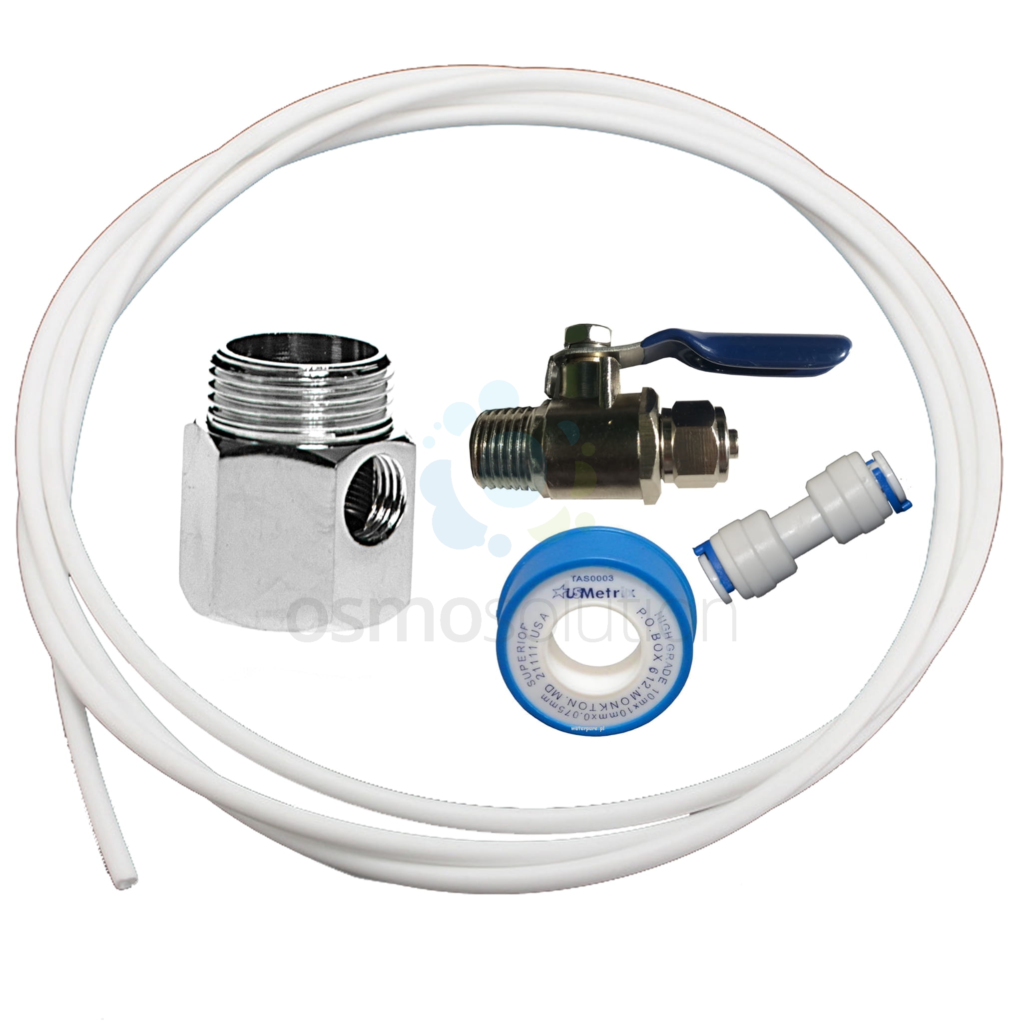 Kompletny zestaw do podłączenia wody do lodówek, kostkarek itp. Zestaw pasuje do każdej lodówki wyposażonej w przyłącze do wodociągu.