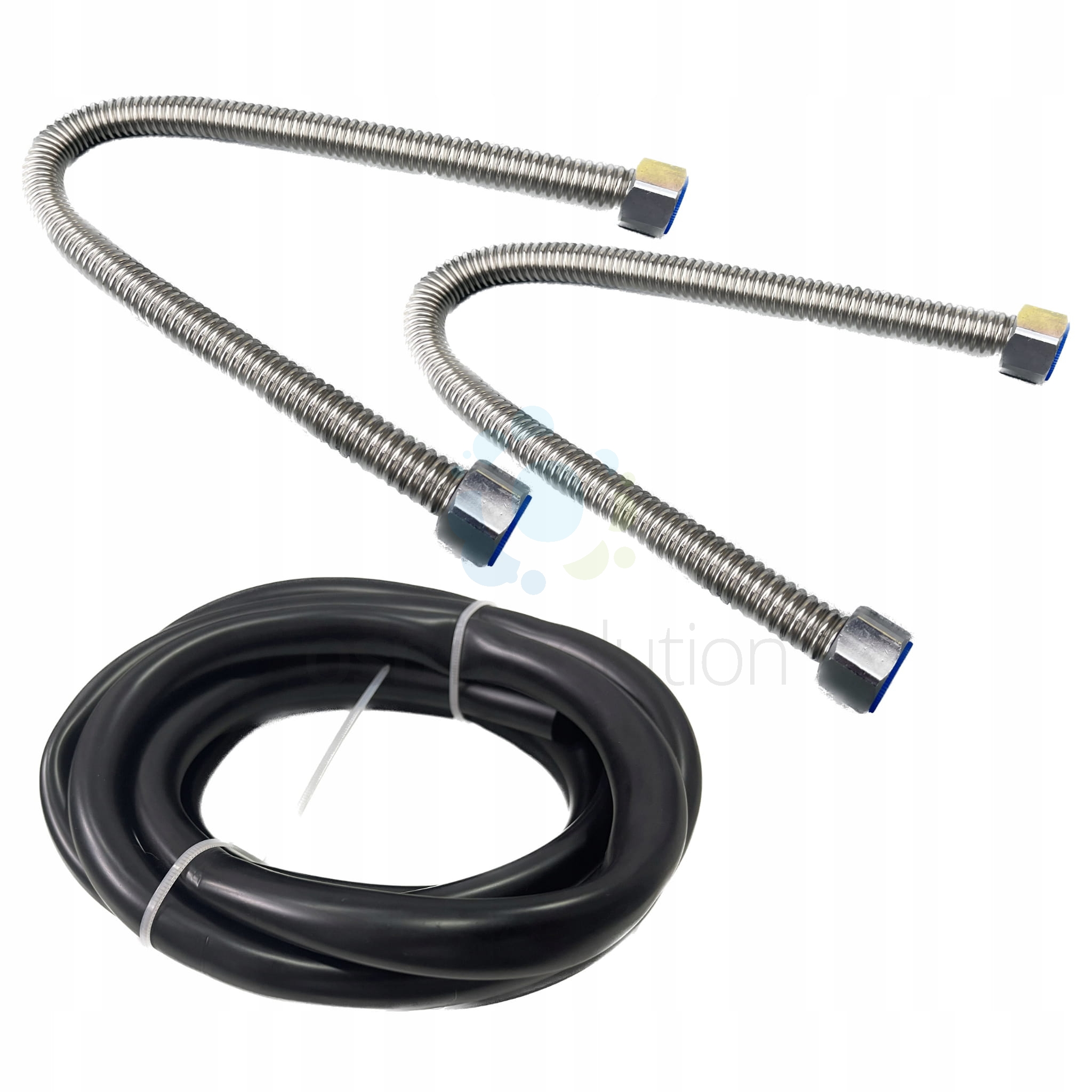 - 2x Stalowy wyginany wąż przyłączeniowy o długości 60 cm z przyłączami 3/4" GW wraz z uszczelkami